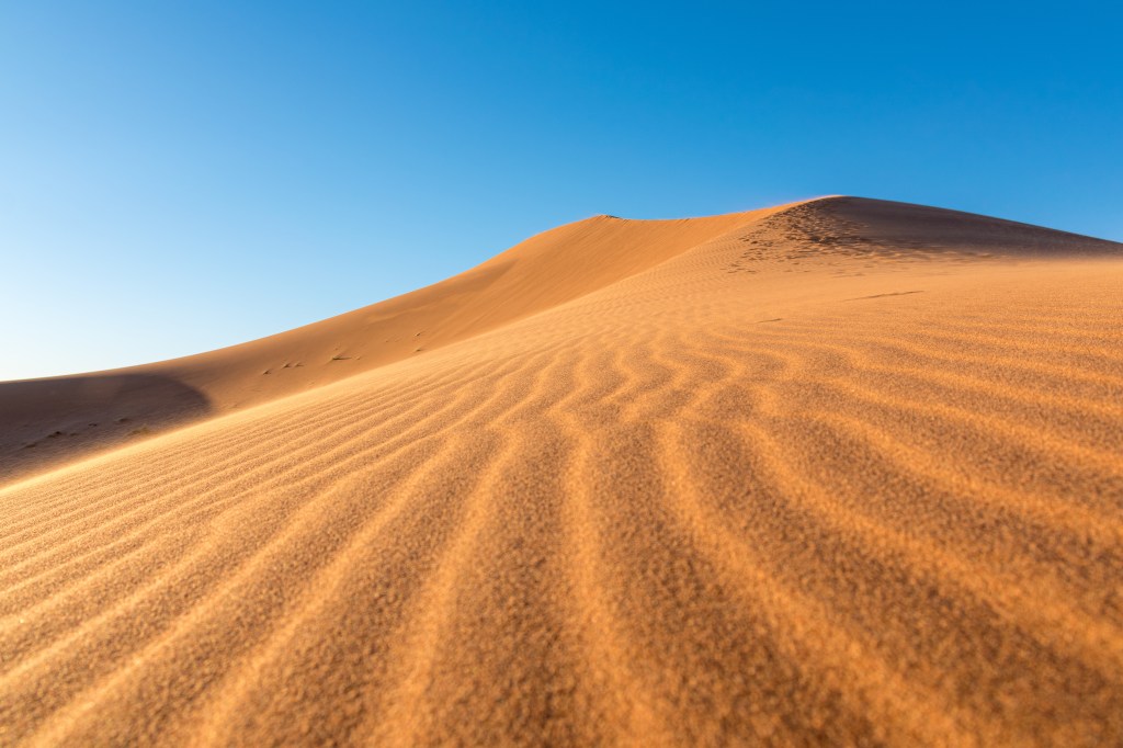 La fina y amarillenta arena no finaliza al encontrarse con el agua, continúa interminable el brillante color abarcándolo todo y el inexistente mar, que parece haberse fundido con el cielo, amenaza, empujado por el sol, desplomarse sobre la superficie ondulante. Aplastante desmesura de infinitos, que invita a frenar los pensamientos, a dejar volar los sentidos aspirando el silencio, sólo roto, por la emocionada respiración. El paisaje atrapa en su esplendor, la dureza y altanería de lo extremo. Un inmenso río, da una gran vuelta, en esta inmensidad triturada refrescando a su paso la vida, el aire y el infinito.
